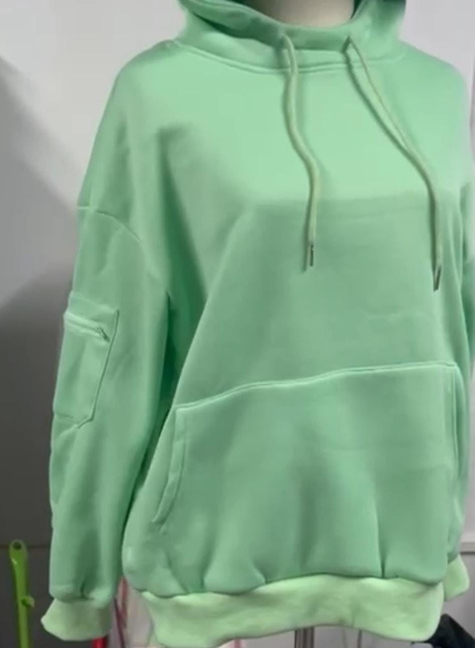 Länge: Messen Sie vom höchsten Punkt Ihrer Schulter gerade nach unten bis zur gewünschten Stelle, wo der Hoodie enden soll.